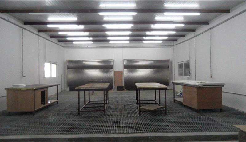 家具烤漆房一般分為噴漆房和烤漆房兩個部分,整個烤漆房為拚裝式結構。房體采用子母插式保溫噴塑牆板,密封、保溫性能好,方便工作人員進出;鋁合金包邊大門。選用低噪音高風量風機,確保噴漆效果。